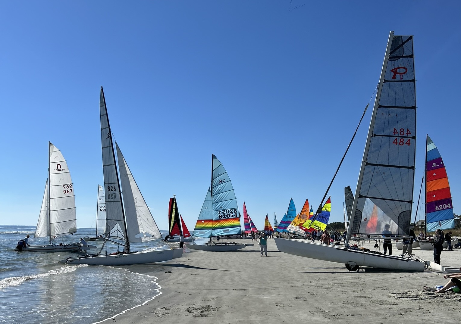 Hilton Head Multi Hull 50th Anniversary Beach Regatta on Oct 30, 2025 – light winds but beautiful colors on Coligny Beach